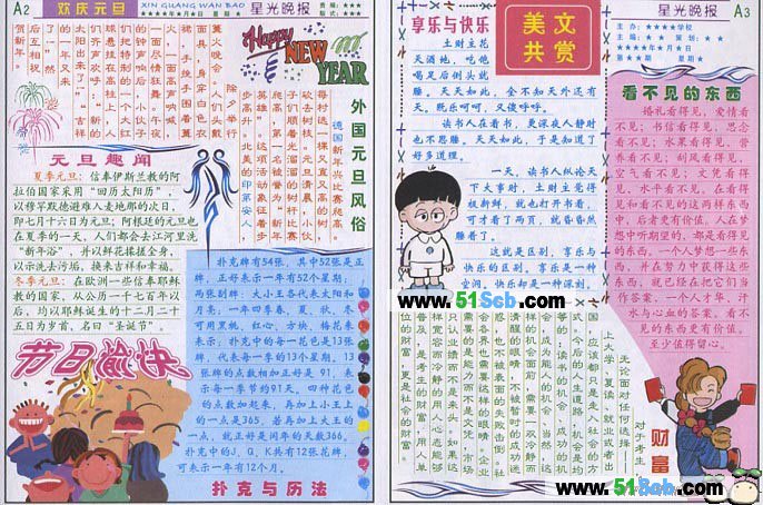 以元旦和小学生作文为主题的手抄报