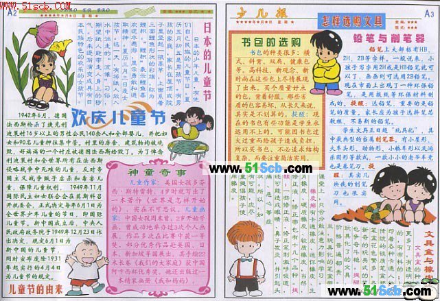 本站提供主题为“六一手抄报:欢庆儿童节”,内容有《日本的儿童节》、《书包的选购》、《神童奇事》等六一手抄报资料内容。