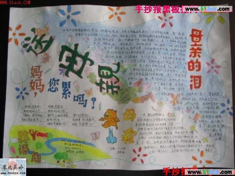 《母亲的泪》、《妈妈,您累吗?》、《送母亲》、《母爱》等母亲节手抄报内容。