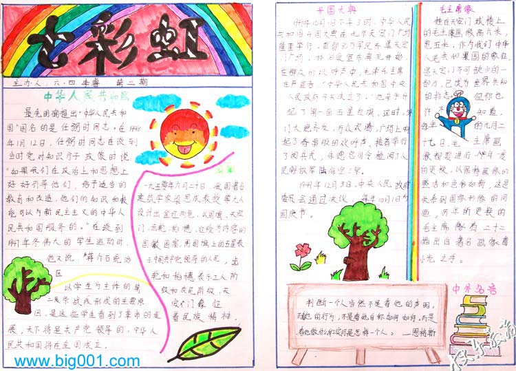 4、《七彩虹》国庆手抄报设计 内容:开国大典、中外名言等