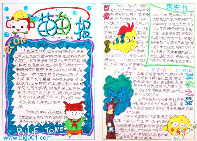 2、小学生庆国庆手抄报 内容:国徽、国庆节、国歌之最等
