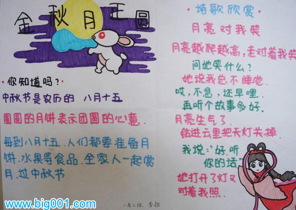 一年级中秋节手抄报《金秋月正园》