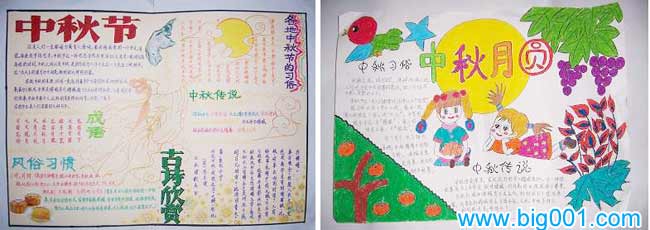 3、中秋节手抄报设计 内容:中秋佳节、秋日的思念、美丽的秋天、兔儿爷与中秋节等