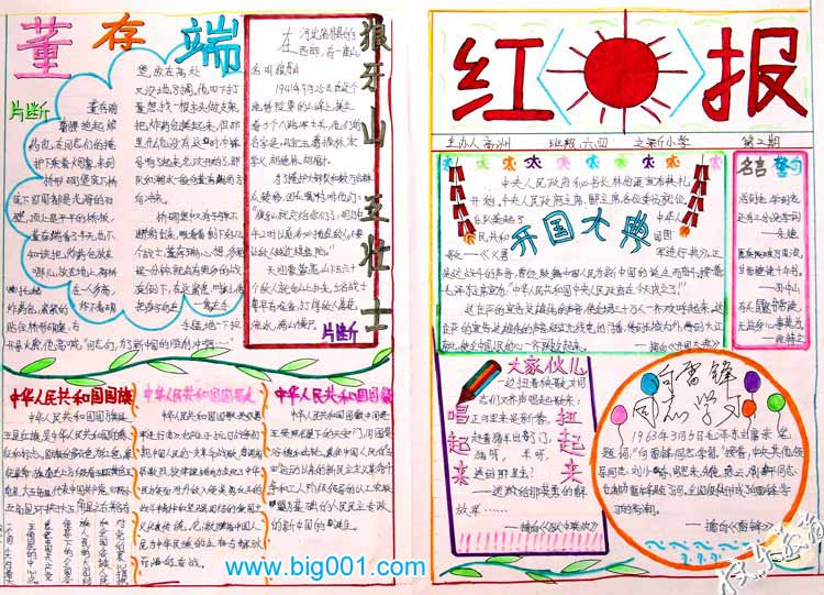 5、小学生庆国庆手抄报 内容:董存瑞、开国大典、向雷锋同志学习等