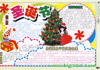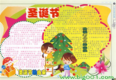 图片文字资料包括:小男孩小女孩装扮圣诞树、云形边框、圣诞老公公的由来、圣诞节的由来