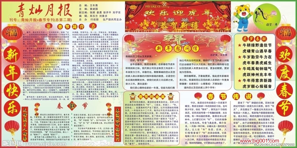 春联也叫门对、春贴、对联、对子、桃符等,它以工整、对偶、简洁、精巧的文字描绘时代背景,抒发美好愿望,是我国特有的文学形式。每逢春节,无论城市还是农村,家家户户都要精选一幅大红春联贴于门上,为节日增加喜庆气氛。这一习俗起于宋代,在明代开始盛行,到了清代,春联的思想性和艺术性都有了很大的提高,梁章矩编写的春联专著《槛联丛话》对楹联的起源及各类作品的特色都作了论述。
