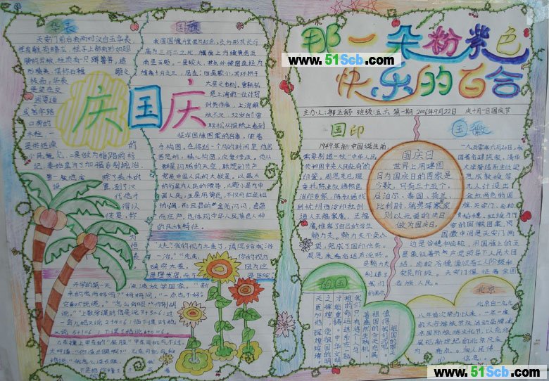 庆国庆节手抄报—那一朵粉紫色快乐的百合