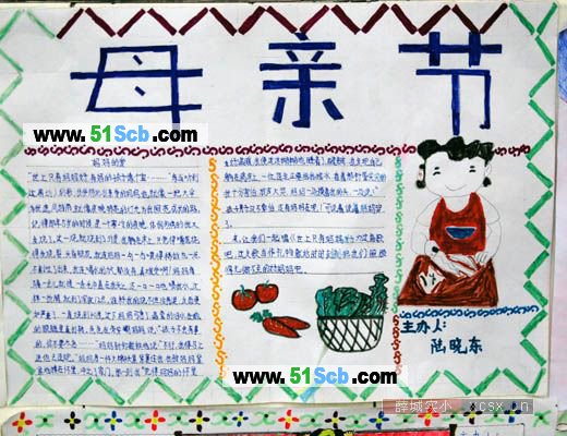薛城区实验小学为培养学生尊老敬老意识,五年级二班学生在班主任王艳玲老师的带领和指导下,自行举办“母亲节”手抄报展览活动,使学生在搜集资料、上网查询、切身体验的同时了解母亲对自己无私的爱,增强了学生热爱父母、热爱家庭的意识,培养了学生立志学习,不断报恩的思想。