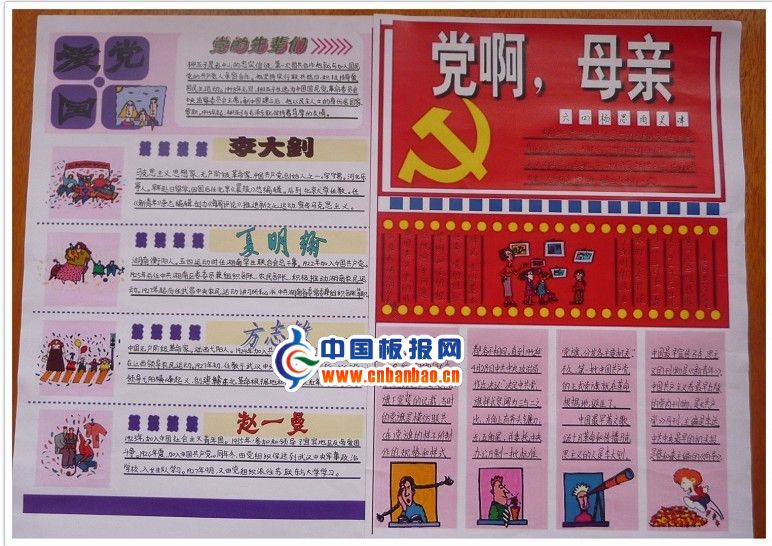 党啊,母亲手抄报 爱党爱国手抄报 党的先辈们 李大钊 夏明翰 方志敏 赵一曼