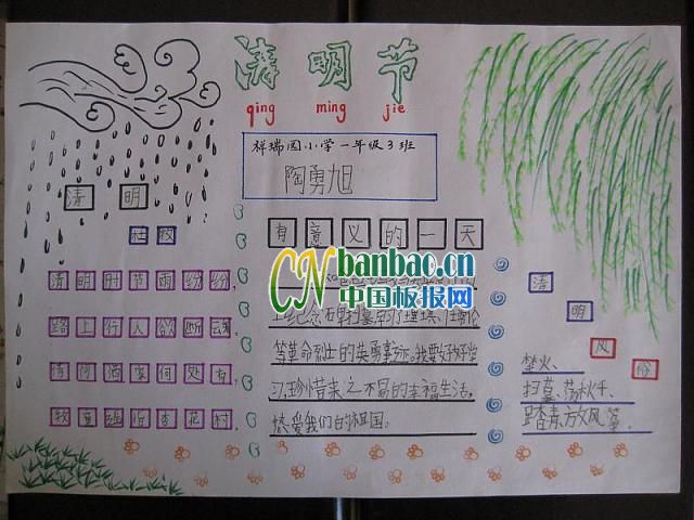 一年级清明节手抄报简单又漂亮