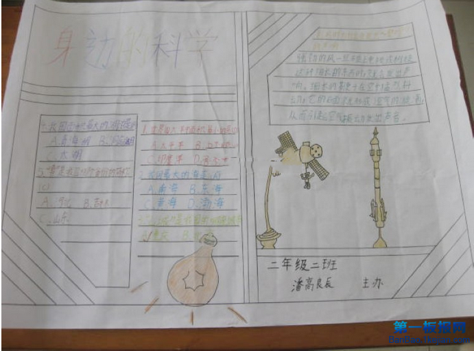 二年级小朋友设计的这幅科学手抄报,版面简单,书写也比较工整,但是用色不够鲜明,字迹比较模糊。
