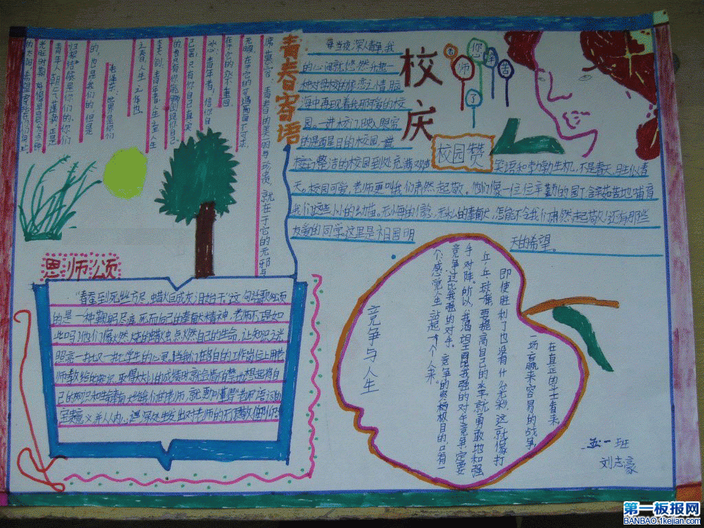 小编小语:校庆手抄报书写了校园赞,青春寄语畅谈学生们对青春的感悟,恩师颂抒发了对老师的感恩之情,竞争与感悟告诉学生们有利竞争的益处