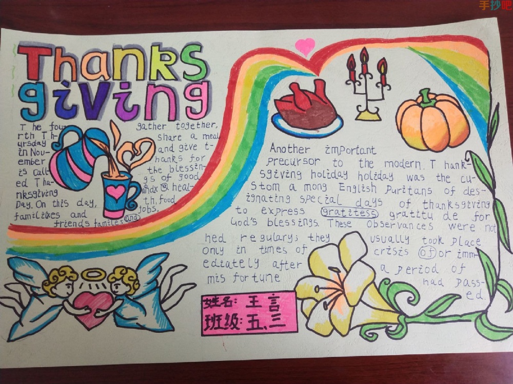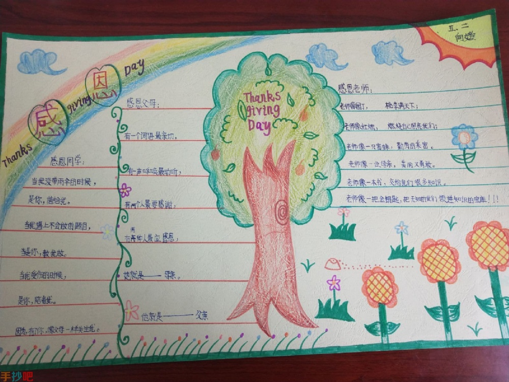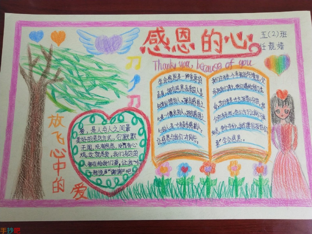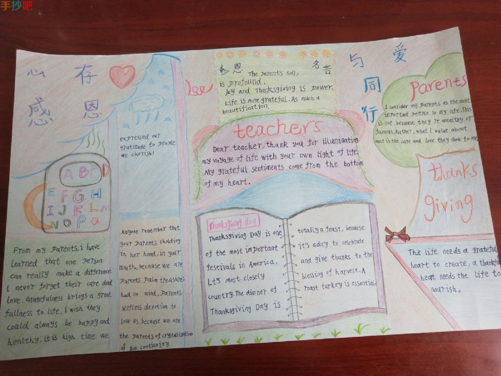 感恩的心,关于感恩的英语手抄报,五年级感恩的心英语手抄报