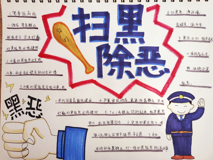 简单好看的扫黑除恶手抄报图片,严厉打击黑恶势力