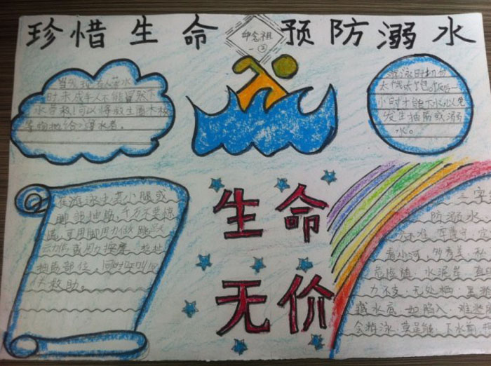 预防溺水手抄报,珍惜生命预防溺水生命无价