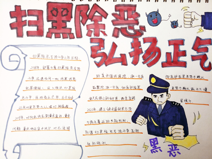 扫除黑恶弘扬正气,小学生扫除黑恶弘扬正气的手抄报黑板报