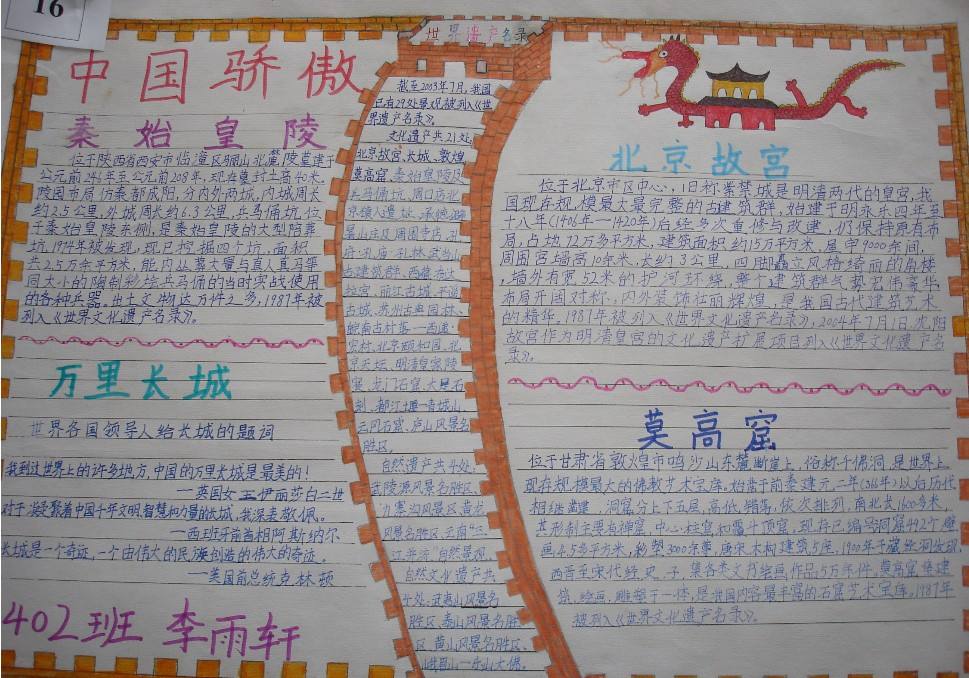 世界遗产,秦始皇陵,北京故宫,世界遗产手抄报