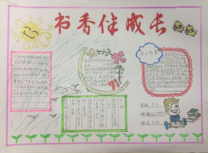 好看的读书手抄报图片,书香伴成长阅读伴成长