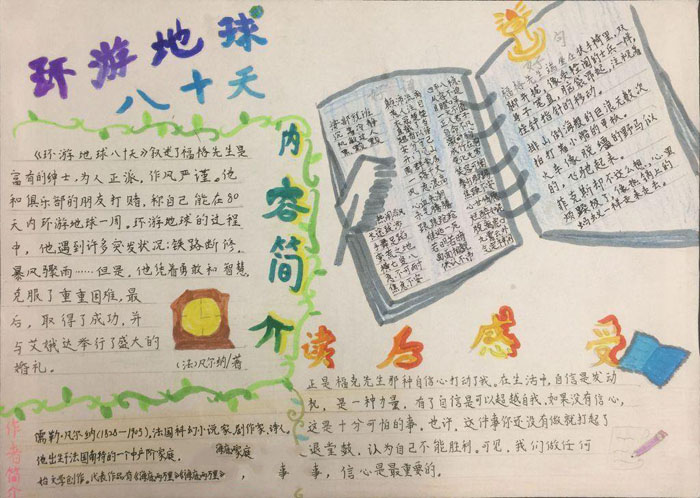 小学生读书手抄报图片,环游地球八十天