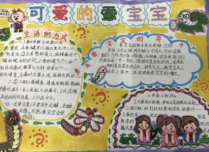 小学生手抄报简单又漂亮,可爱的蚕宝宝