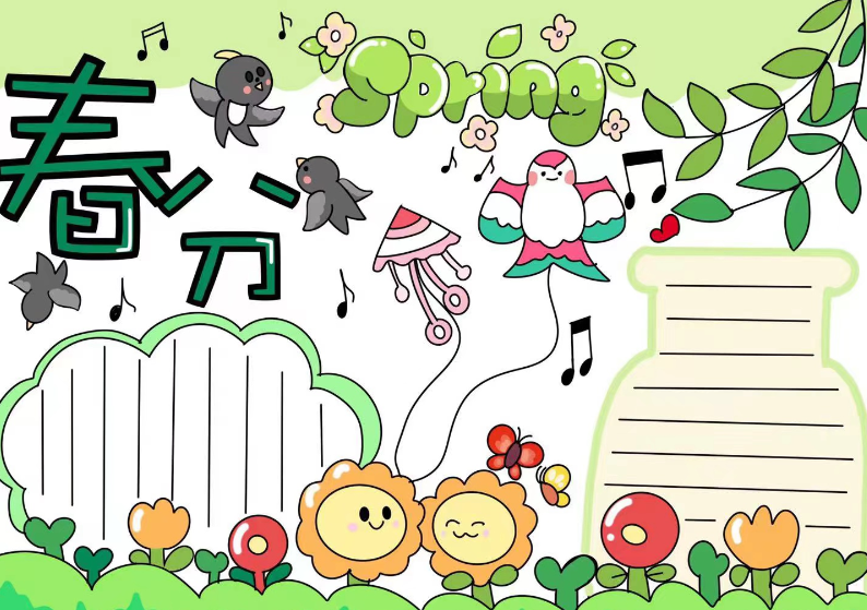 一幅完整漂亮的小学生二十四节气春分手抄报模板图片