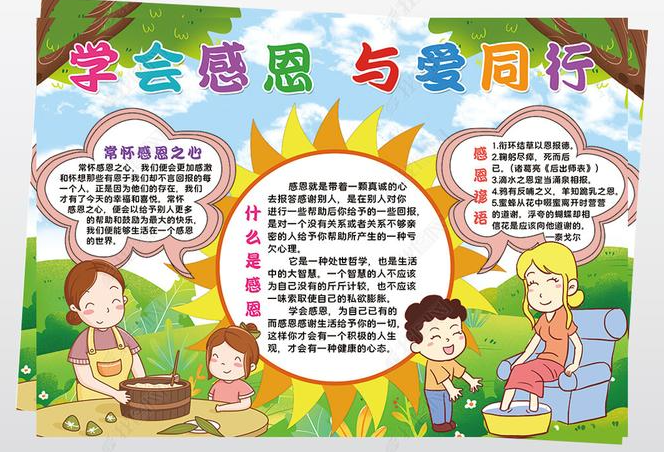 小学生感恩手抄报 学会感恩与爱同行手抄报