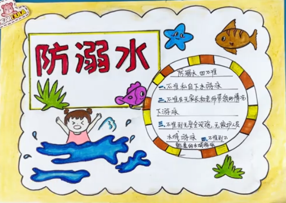夏天简单又漂亮防溺水手抄报怎么画?小学生防溺水主题手抄报画法