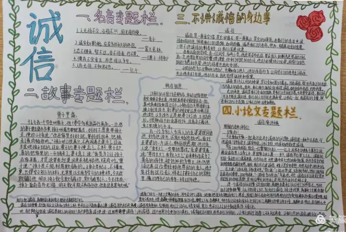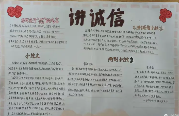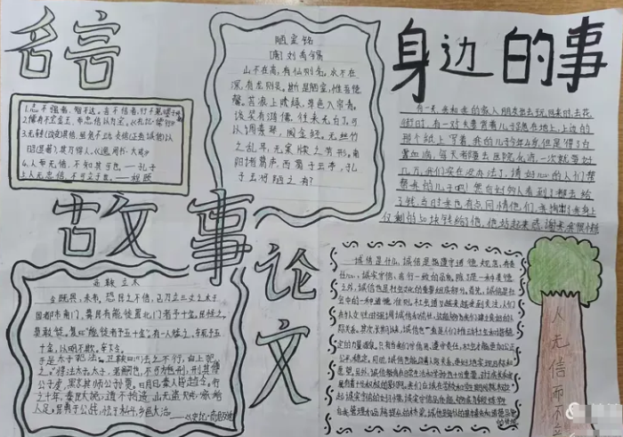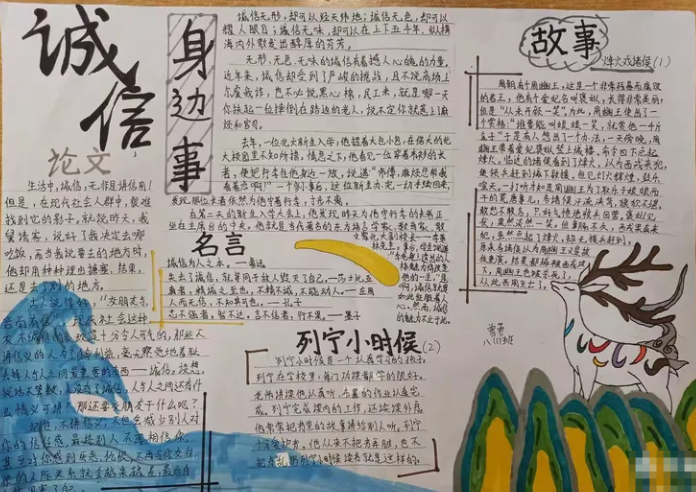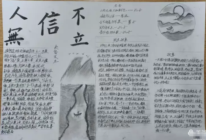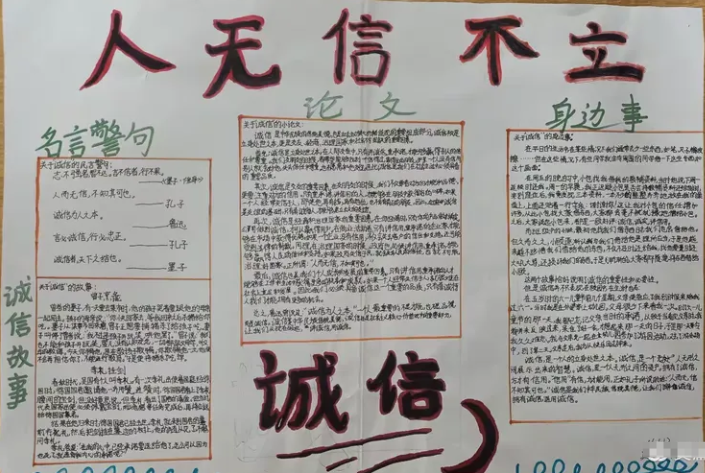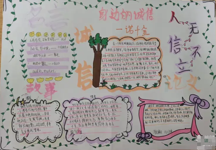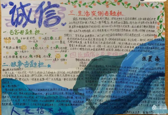 初二班级语文获得一等奖手抄报 主题手抄报“诚信”