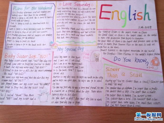 plans for the weekend;last saturday;baby sister says no;my special dog; do you know?; slower than a snail。