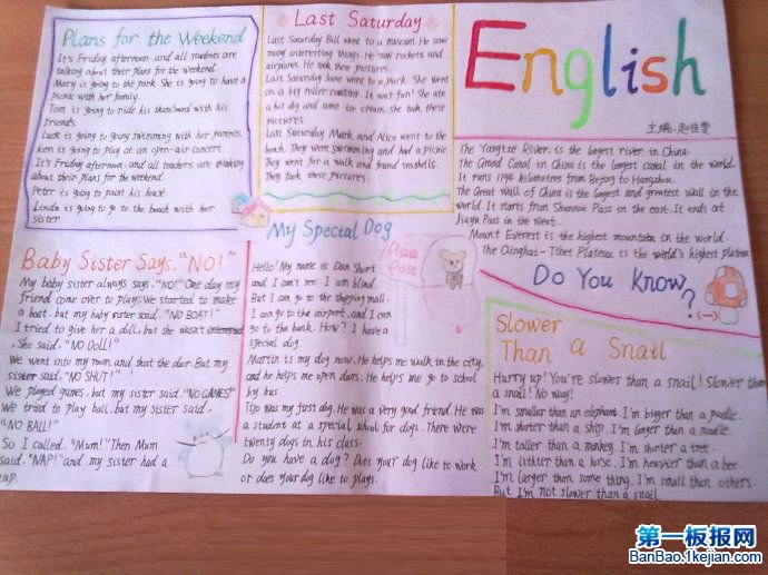 plans for the weekend;last saturday;baby sister says no;my special dog; do you know?; slower than a snail。