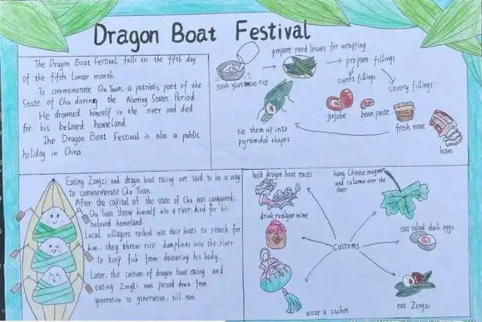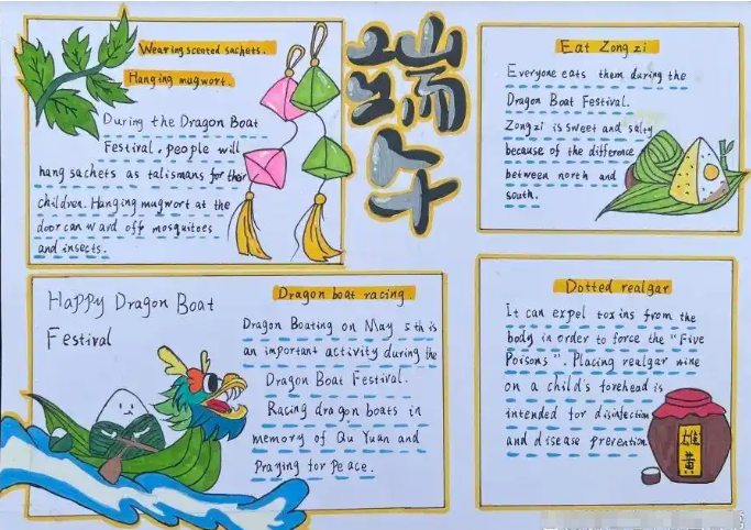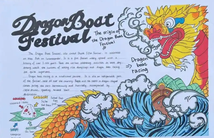 2025端午节英文手抄报 端午节主题英文手抄报优秀画展!