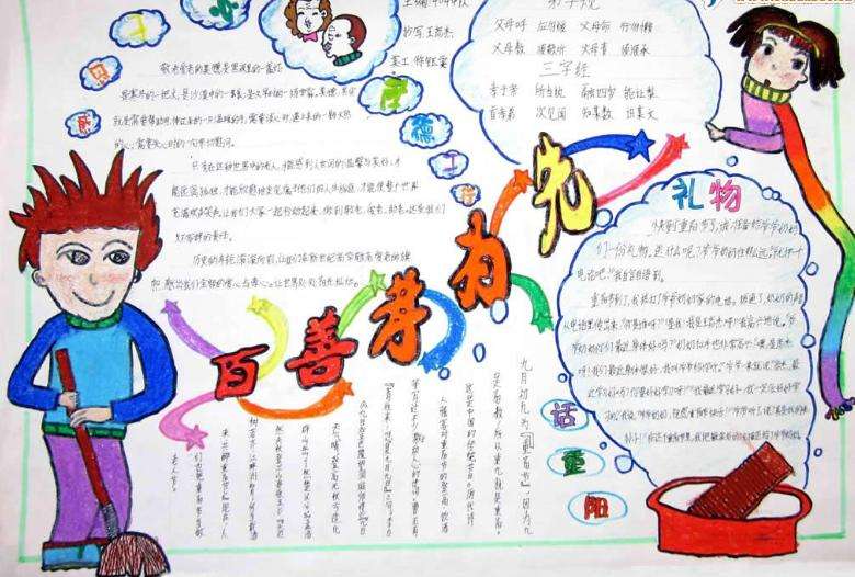孝子亲则子孝,钦于人则众钦,关于百善孝为先的手抄报