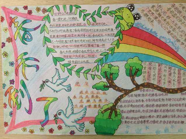 春天到了,鸟儿喳喳叫,漂亮的春天的手抄报