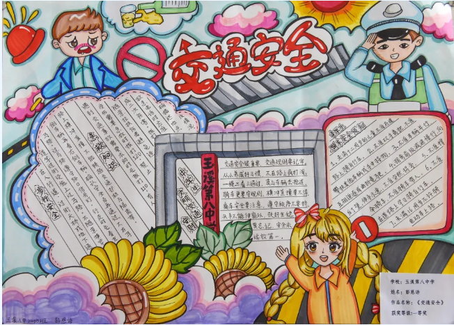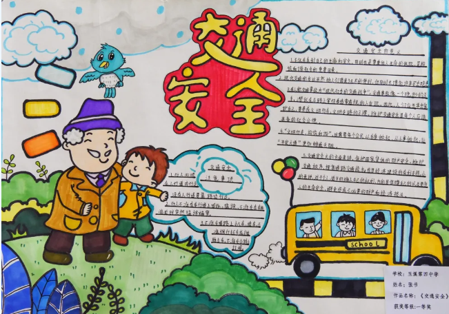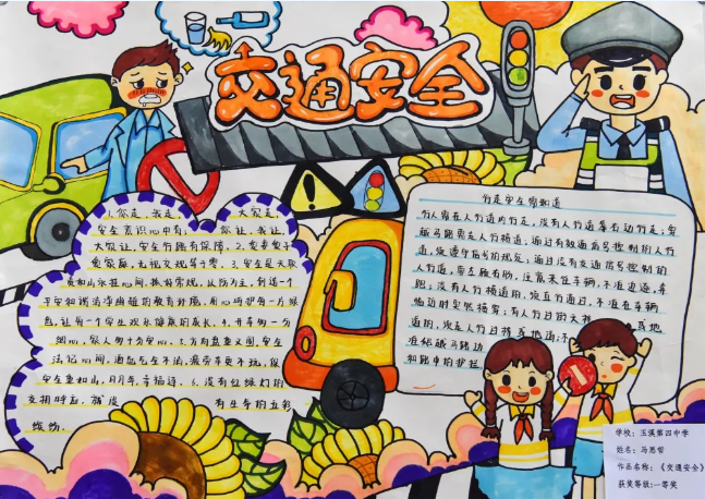 中学组比赛获奖手抄报 《交通安全》一等奖手抄报图片大全!