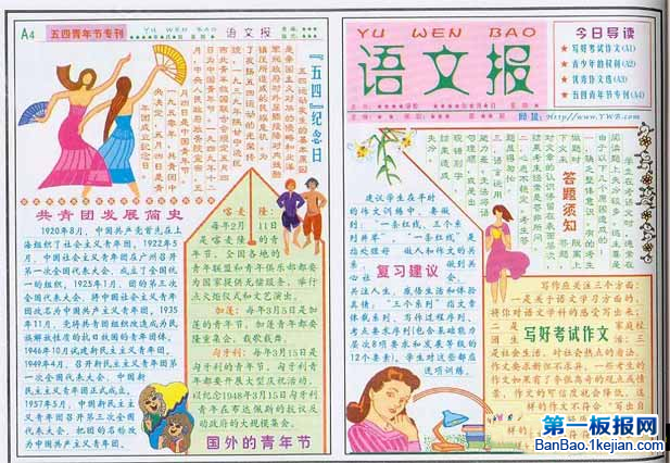 中学生语文手抄报报庆祝五四青年节专刊页面地址: