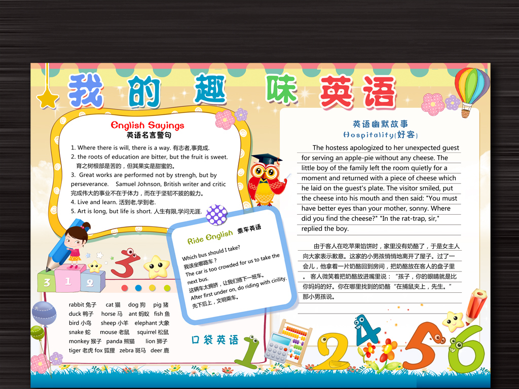 我的趣味英语,英语名言警句,英语故事,关于英语的宣传板
