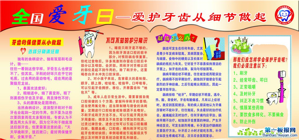 我们知道最美丽的表情是微笑,最真诚的表情则是开怀大笑。但若是拥有一口黄牙、烂牙,这可叫我们如何开心地笑、露齿地笑呢?为了关注牙齿健康,每年的9月20日是全国爱牙日,你是否护理你的牙齿了呢?