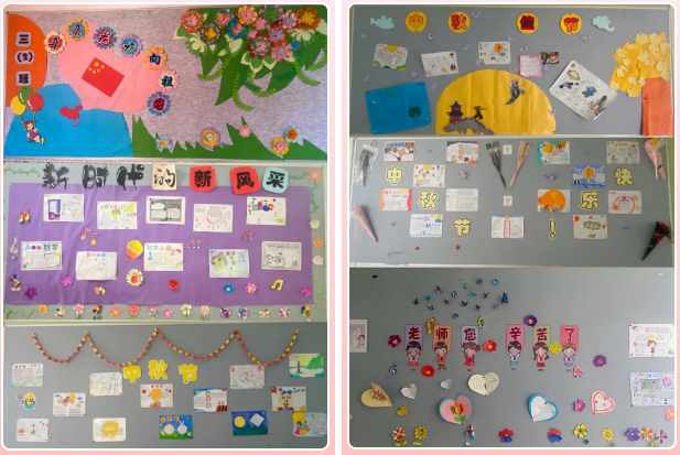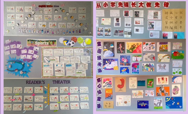老师和同学们积极筹备,精心设计宣传展板。各班级的布置均以“班级文化”“文明礼仪”、“爱国教育”等为主题展开。版面设计精巧、图片生动活泼、富有创意,广受同学们的喜爱。独具匠心的班级布置给予了每个同学展示自己风采的平台和机遇,同时也充分展示了老师们的智慧、审美情趣和艺术才华,创造出了各自不同的班级文化特色和学习文化氛围。
